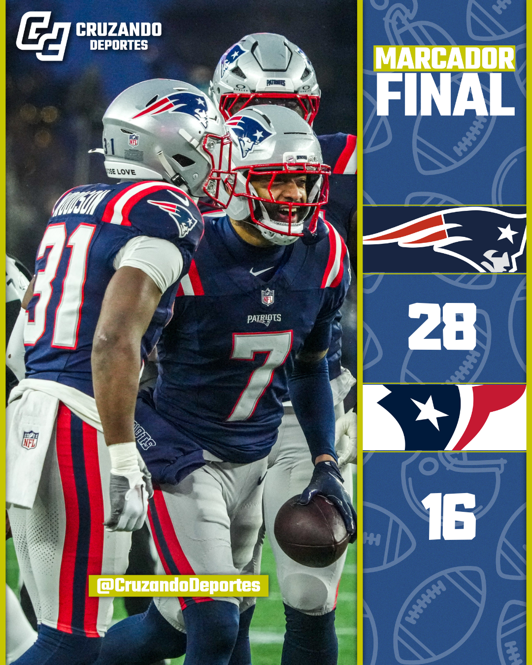 Patriots imponen su defensa en la nieve y eliminan a Texans rumbo a la Final de la AFC