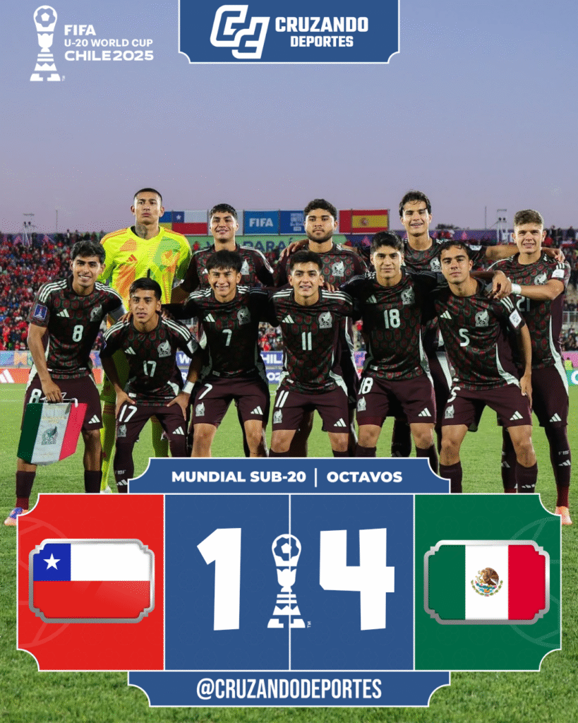 La selección mexicana Sub-20 confirmó su buen momento en el Mundial de Chile al vencer 4-1 a la anfitriona, asegurando su pase a los cuartos de final y manteniendo el invicto en el torneo. El primer gol llegó al minuto 26, cuando Tahiel Jiménez culminó una gran jugada colectiva con un disparo cruzado. En la […]