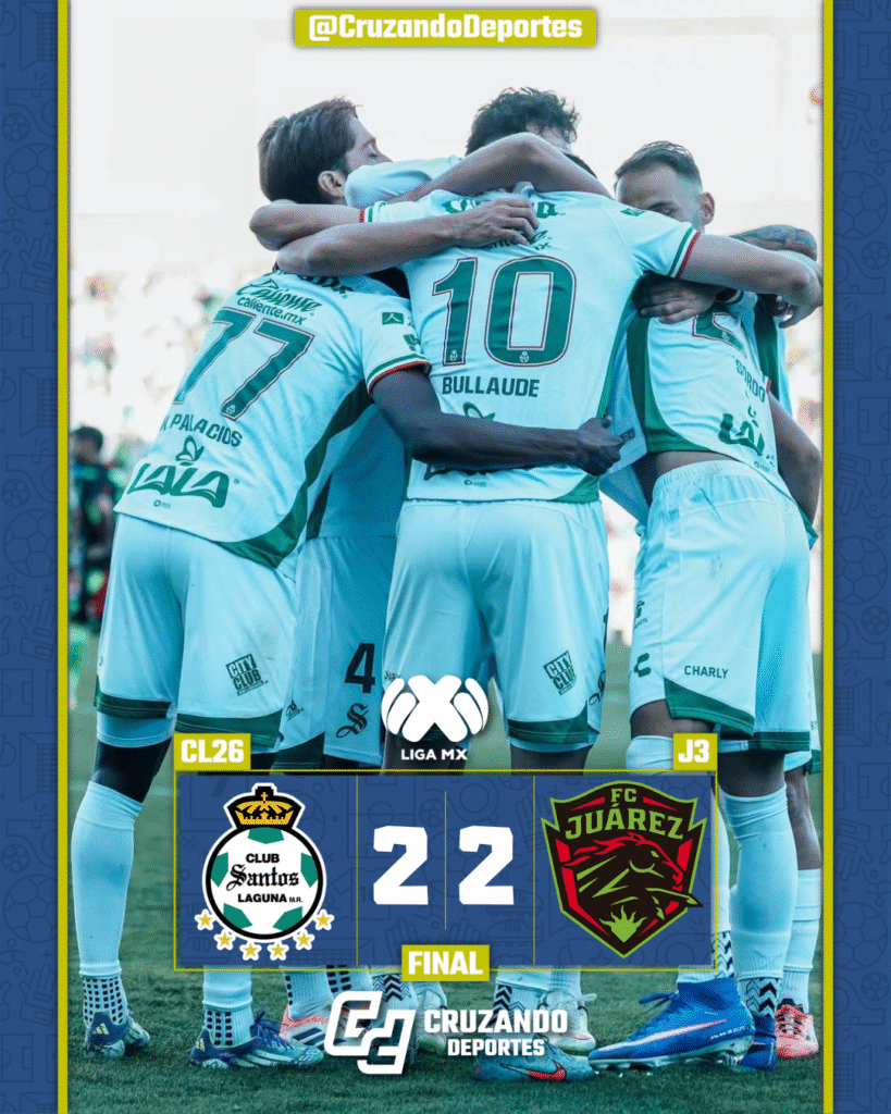 Santos Laguna y los Bravos de Juárez ofrecieron un partido intenso y con goles en el Territorio Santos Modelo, donde empataron 2-2 en actividad de la Jornada 3 del Torneo Con México Clausura 2026. El conjunto fronterizo llegó a Torreón con la intención de recomponer el camino tras su derrota ante Chivas a mitad de […]
