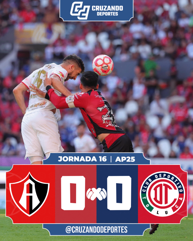 Atlas y Toluca empatan sin goles en el Jalisco y reparten puntos en la Jornada 16