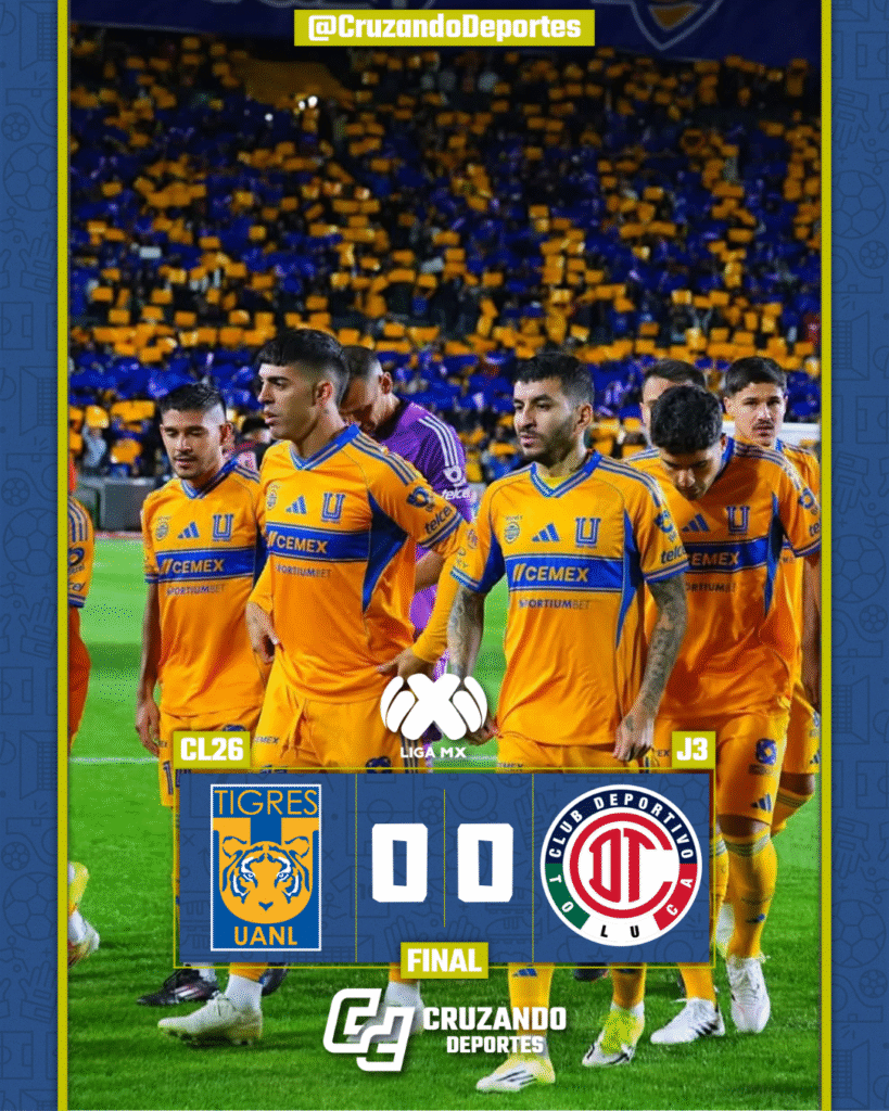 Tigres y Toluca no lograron hacerse daño y empataron 0-0 en el Estadio Universitario, en duelo correspondiente a la Jornada 3 del torneo Con México Clausura 2026, una reedición de la Final más reciente de la Liga BBVA MX que esta vez se quedó sin goles, pero no sin intensidad. El primer tiempo fue ligeramente […]