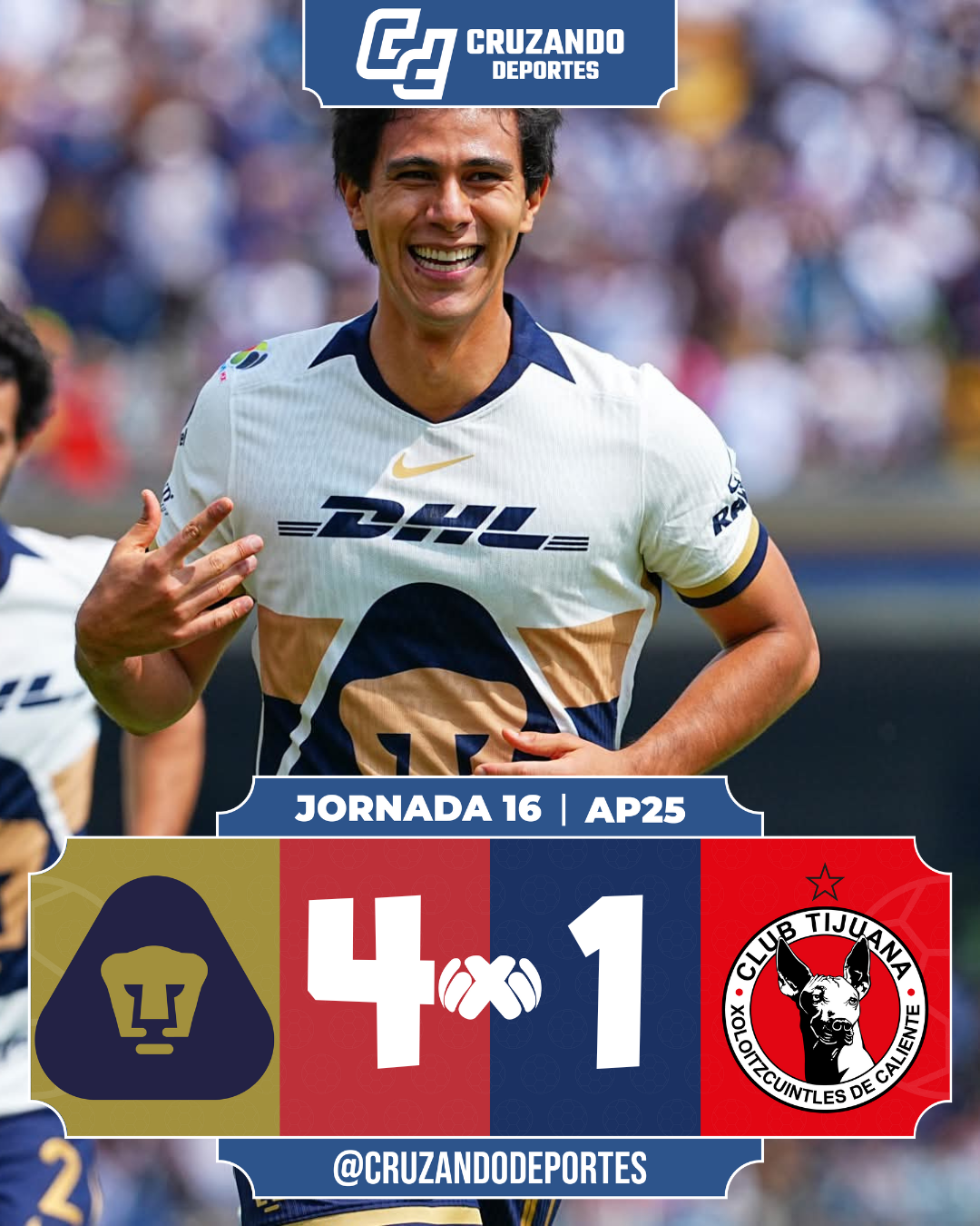 Con este resultado, Pumas escala al décimo lugar con 18 puntos, mientras que Xolos se estanca en el noveno con 21, sumando ya cinco encuentros sin ganar.